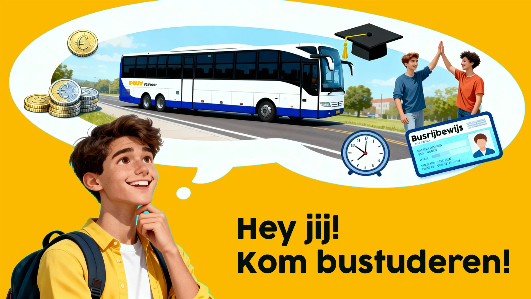 Dit is je kans om letterlijk te voelen wat ‘bustuderen’ betekent. Je maakt een korte rit in een echte touringcar, met alles erop en eraan. Een unieke ervaring die je nergens anders krijgt. Het is veilig, relaxed en helemaal gratis.